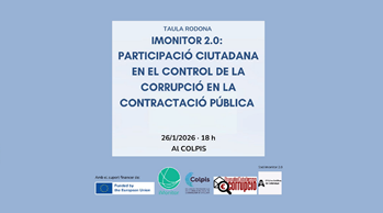 El professor Antoni Cardona, el dia 26 de gener del 2026, ha participat en la Taula rodona: “La participació cívica com a mecanisme de transparència i control de la corrupció a la contractació pública”, celebrada al Col·legi de Professionals de Ciència política i Sociologia de Catalunya, dins del Projecte IMonitor, projecte europeu finançat per la CE i que té com a objectiu apropar el concepte de supervisió cívica de la contractació pública per enfortir la transparència i la integritat en els processos de contractació.